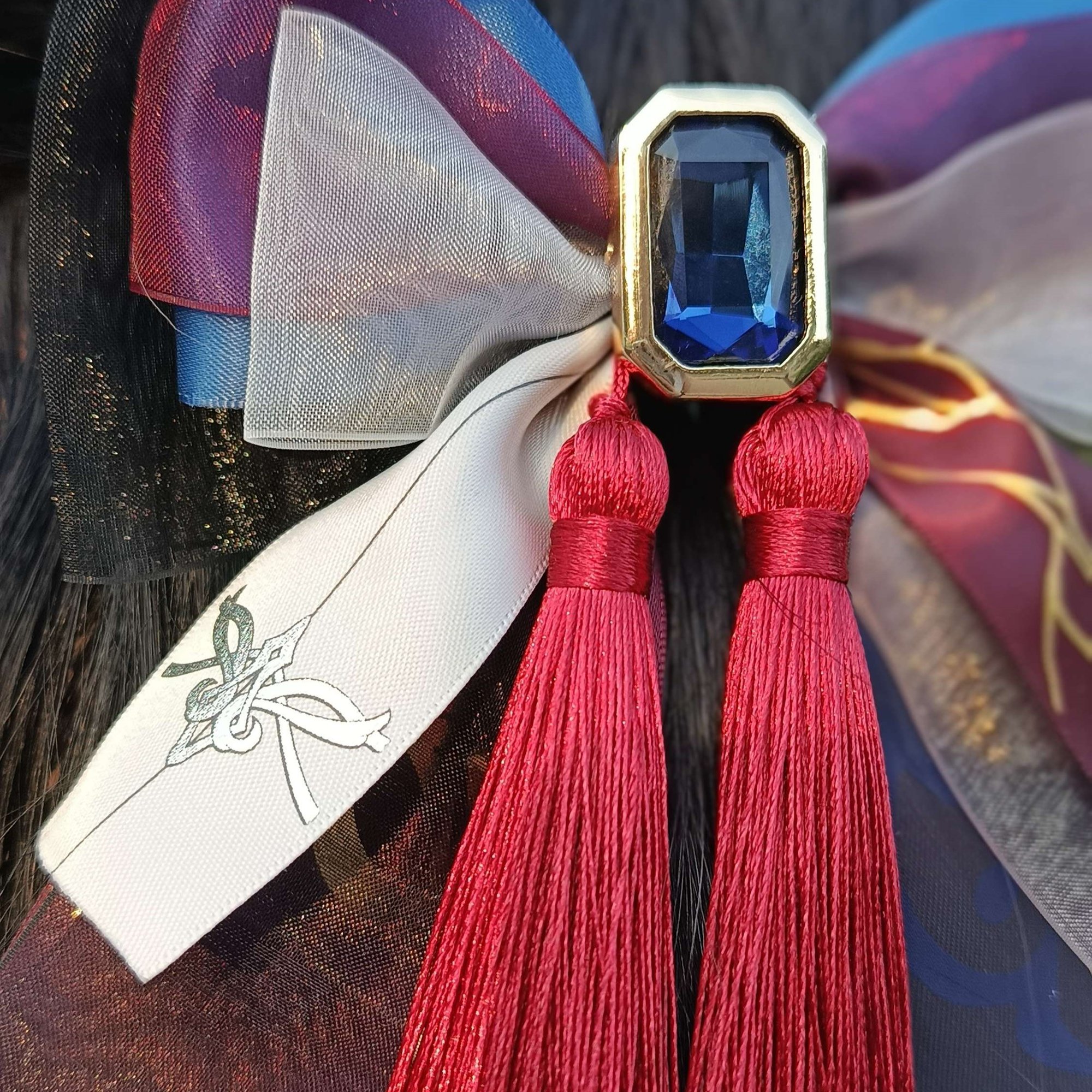 This elaborate hair bow is inspired by the Stellaron Hunter, Blade! Full of details from his character design, but subtle enough that it's more of a "if you know, you know" item. It can also be used as a bag accessory or simply put on display!